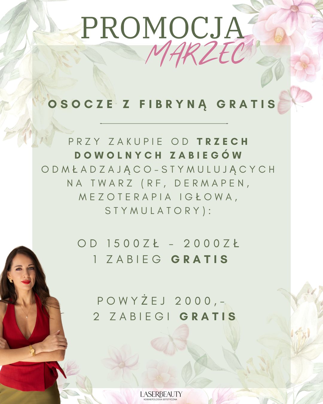 Przy zakupie pakietów minimum 3 zabiegów na zabiegi zabieg osocza w połączeniu z fibryną GRATIS! Od kwoty 1500zł do 2000zł – 1 zabieg gratis. Powyżej 2000zł – 2 zabiegi gratis.